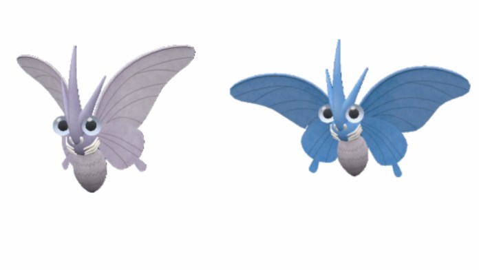 Shiny Venomoth’s color is noticeably different from its regular version, unlike its pre-evolution, Shiny Venonat. Its body color changes from purple to blue. You can catch this shiny at Area Zero, North Province Area Two, the Tagtree Thicket, and Casseroya Lake.
