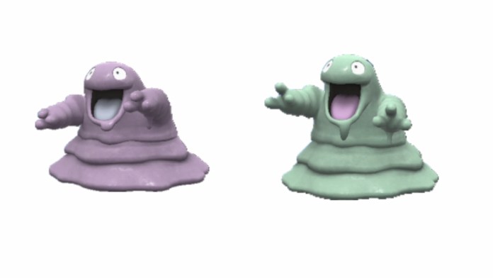 This shiny’s color change is evident when compared to its non-shiny counterpart. Shiny Grimer goes from having a purple body to a cream body with a tinge of green. You can catch this shiny at West Province Area Two and East Province Area Two.