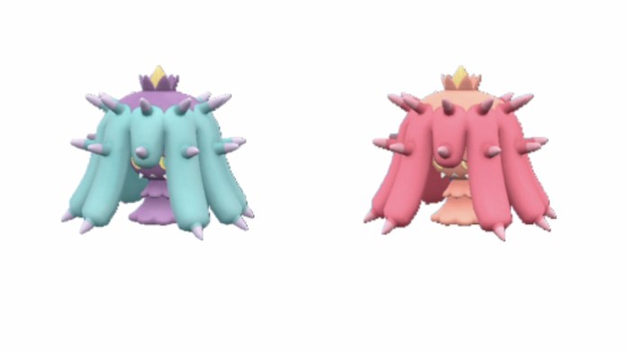 Shiny Mareanie completely changes its color when compared to its non-shiny variant. Its shiny form is pale pink in color, replacing the shell’s original light teal hue. In addition, the main boy is different because it’s soft peach instead of light purple. This shiny can be found in the East Paldean Sea.