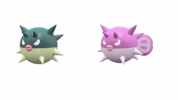 There is a clear distinction between this shiny and its non-shiny counterpart. It changes the color palette of its body color and mist to a violet body and light powder blue mist. You can catch this shiny at East Province Areas Two and Three, South Province Areas One and Three, and West Province Area One.