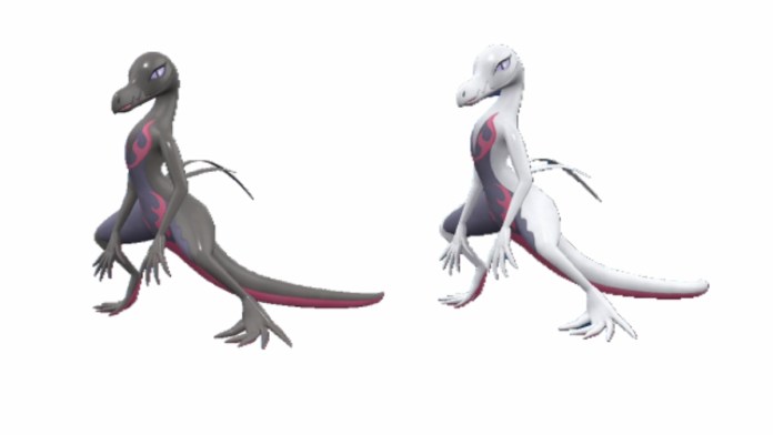 Compared to its non-shiny counterpart, the shiny Salandit appears very different. Its eyes and body both become white. This shiny can be caught in the Alfornada Cavern, the Dalizapa Passage, East Province Areas Two and Three, the Glaseado Mountain, and West Province Areas One and Two.