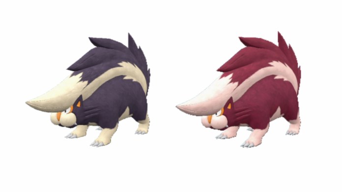 Shiny Stunky has a simple but very noticeable change in color when compared to its non-shiny version. It changes its body color from black to maroon. If you are on Scarlet, you can catch this shiny at South Province Areas Three and Five and West Province Area Two. If you are on Violet, you can obtain this Scarlet exclusive shiny by trading a Shiny Stunky from Scarlet.