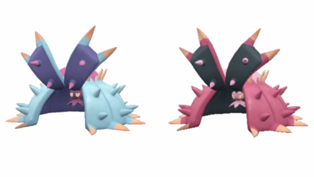 Like its pre-evolution Shiny Mareanie, Shiny Toxapex looks completely different. Instead of purple as in the original, its inner shell is black. In addition, both versions have different outer shell colors: the original is powder blue, while the shiny version is pale pink. You can have this shiny by evolving a Shiny Mareanie.