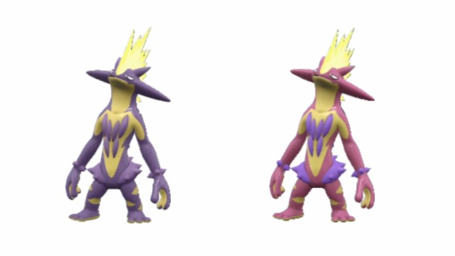 Similar to its pre-evolution, Shiny Toxel, Shiny Toxtricity (Amped Form) has a strikingly different color from its non-shiny counterpart. It changes its body’s hue from violet to pink. You can catch this shiny at Alfornada Cavern.