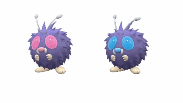 Shiny Venonat undergoes a slight but noticeable color change compared to its non-shiny version. The only difference is that the pink in its eyes and nose is replaced with blue. You can catch this shiny at East Province Area One and the Tagtree Thicket.