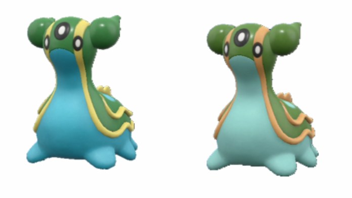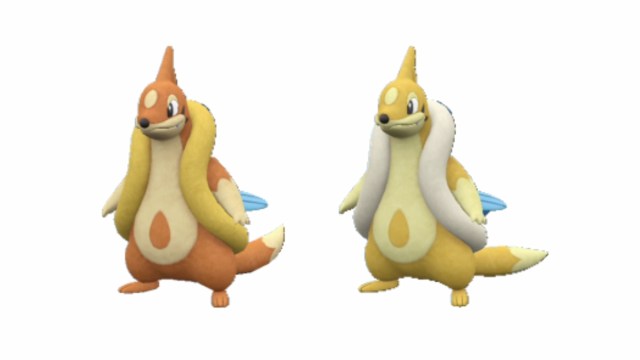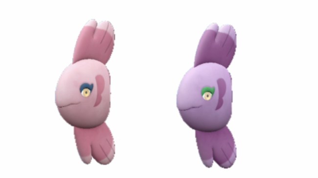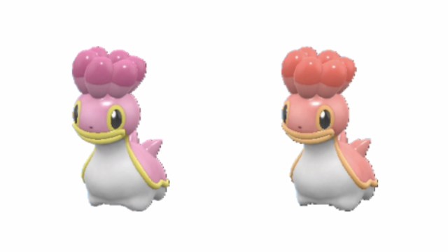 This shiny completely changes its entire color palette compared to its non-shiny variant. Its color changes from a white and pink palette to a gold and purple palette. You can catch this shiny at East Province Area Two, South Province Area Five, and West Province Areas One and Two.