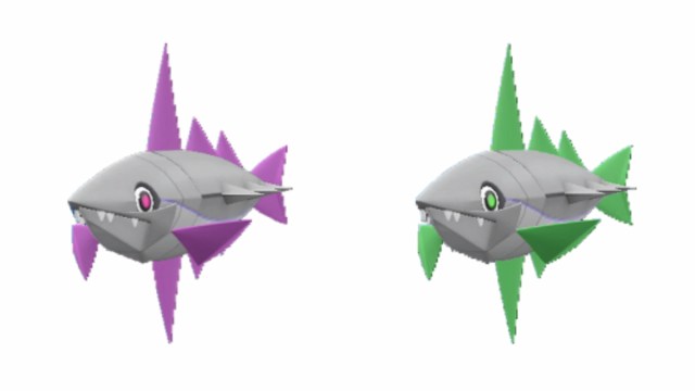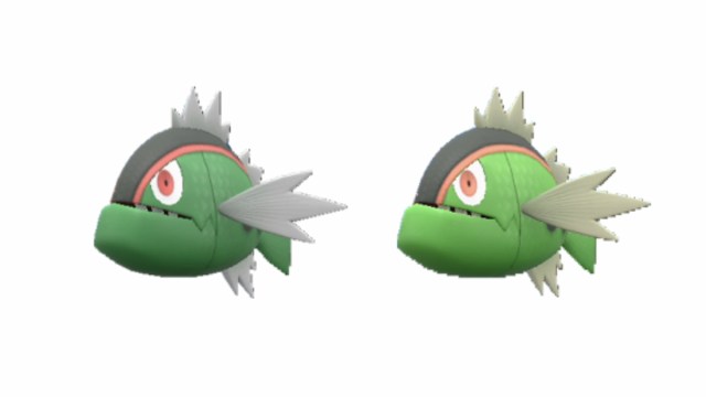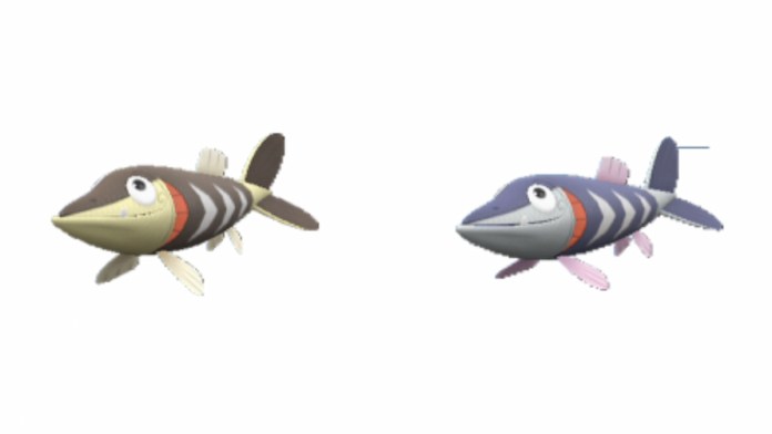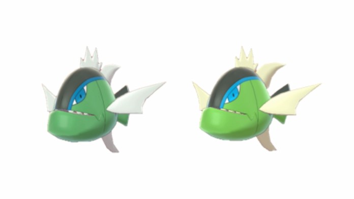 Shiny Veluza’s body is still gray, just like the original. The only difference is that the color of its fins and tail has been changed from magenta to light green. This shiny can catch in Casseroya Lake, East Province Area One, Glaseado Mountain, the North Paldean Sea, and the West Paldean Sea.