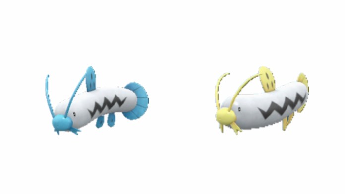 Just like its red-striped version, you can easily miss the difference between this shiny from its non-shiny version as it’s so insignificant. It only ever so slightly changes the shade of its body. You can catch this shiny at East Province Areas Two and Three, Glaseado Mountain, South Province Areas One, Three, Four, Five, and Six, and West Province Areas One, Two, and Three. Much like its red-striped sibling, it doesn’t evolve in Scarlet & Violet.