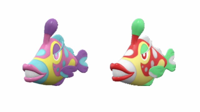 Shiny Bruxish completely changes its color compared to its non-shiny counterpart. It changes its pallet to a red, green, white, and yellow color palette. You can catch this shiny at the East Paldean Sea and the West Paldean Sea.