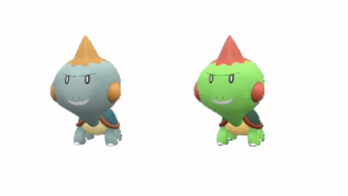 Shiny Chewtle has a significant change in color palette compared to its non-shiny variant. It shifts its color palette from baby blue, yellow, and brown to apple green, leaf green, and bronze. You can catch this shiny at East Province Areas Two and Three, South Province Areas One, Two, Four, and Five, and West Province Areas One and Two