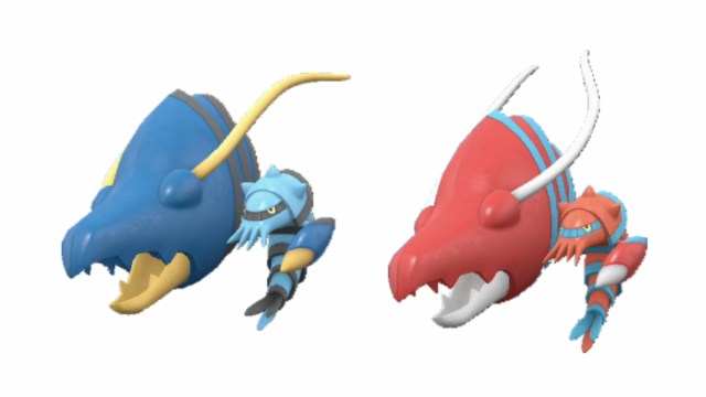 Shiny Clawitzer’s color, much like its pre-evolution Shiny Clauncher, completely differs from its non-shiny version. Its body is red with blue stripes compared to the blue with black stripes non-shiny version. This shiny can be caught at the North Paldean Sea and the South Paldean Sea if you are on Violet and can be obtained by trading it from Violet if you are on Scarlet. You can also evolve a Shiny Clawitzer that you traded from Violet.