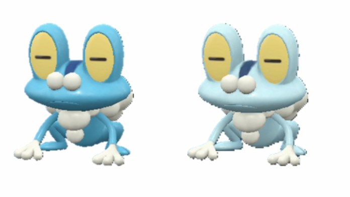 Shiny Froakie is only slightly darker than its non-shiny counterpart. The color of its body changes from pale blue to light powder blue. You can get this shiny Pokémon by hatching it from an egg. The egg can only be produced if you participated in the Greninja event raid and captured yourself a frog.