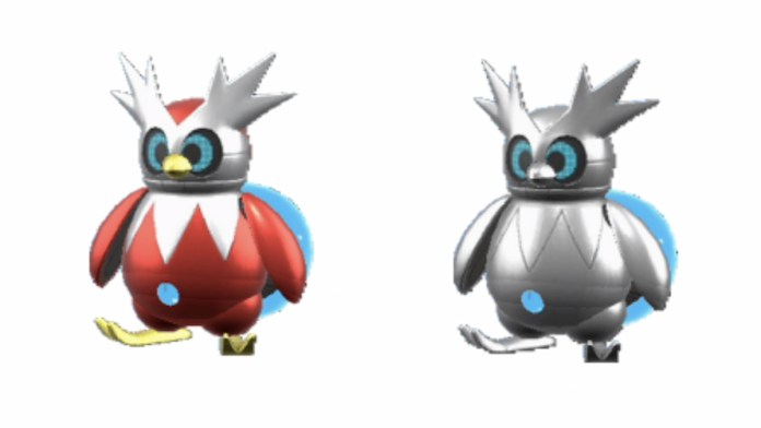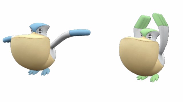 Like its pre-evolution Shiny Wingull, Shiny Pelipper barely has any changes to its color. This shiny only changed the color of its feet and the accents on its body from blue to green. You can catch this shiny at the North Paldean Sea and the West Paldean Sea.