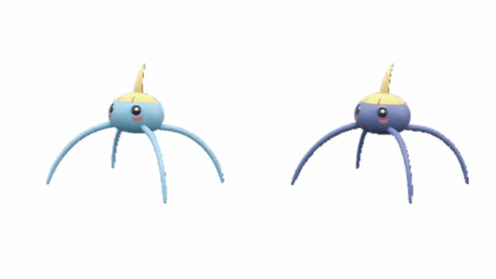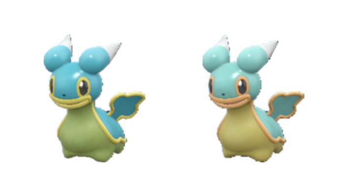 This shiny has a very noticeable but somewhat simple change. Shiny Alomomola changes the color of its body to purple from pink. You can catch this shiny at the North Paldean Sea