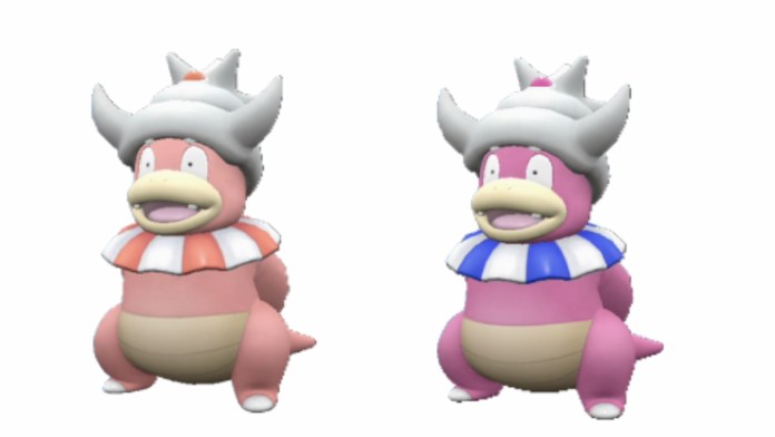Shiny Slowking has a slight difference in shade compared to its non-shiny version. It has a darker shade and a blue-striped collar. You can get this shiny by trade evolving a Shiny Slowpoke with King stone equipped.
