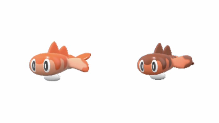 Shiny Tatsuguri (Stretch Form) is an entirely new color scheme. In the original, its main body is yellow, while its pectoral fin is white. Meanwhile, in its shiny version, the main body is dark orange, the pectoral fin is white, and the body has some pale orange markings. This shiny can be found at Casseroya Lake.