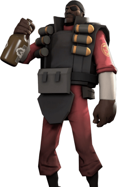 Demoman is a character that prefers to use grenade launches. He has a huge list of different weapons of this type and you will be able to choose any of them. This hero allows you to attack your opponents from unexpected angles and deal a decent amount of damage to them.