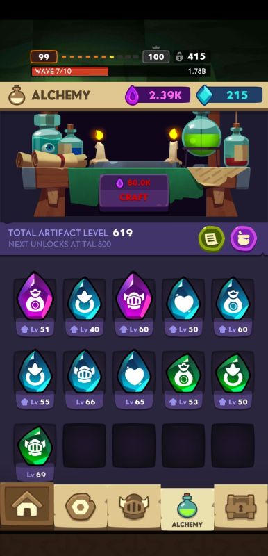 Early on, I don’t think you should focus on rerolling too often, though. Wait until you have most of your Artifacts at Purple level (with three bonuses unlocked), and start rerolling afterwards if needed.