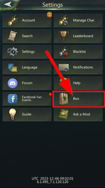 - The menu expands, and then click on the Box icon located just above the Menu option.