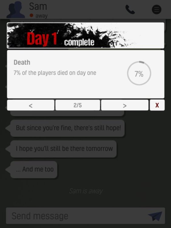 The game begins with you receiving a text message from an unknown number. After exchanging a few text messages with the stranger – whose name is Sam – you find out that something terrible happened in his city and there’s a bit of a zombie apocalypse thing going on. Sam seems completely helpless and mostly clueless and you will have to guide him (or maybe her?) through everything. By sending text messages. Fortunately, you won’t have to type them – but choose one of the two predefined options which will change the way the story goes.