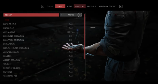 If you have a high-end PC, anything above or with RTX 3070, you can run the game at Atomic, the highest graphics settings for the game that switches every setting to maximum. And if you have an RTX 20xx or above series card, you can make use of the DLSS Super Resolution graphics setting to set it to any of the ones: