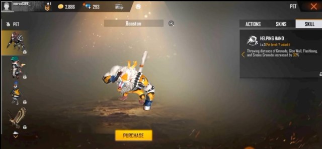 Beaston’s Ability is called Helping Hand, through which it can increase the throwing distance of grenades, gloo walls, flashbangs, and smoke grenades. Moreover, the ability of the pet can be upgraded up to three levels.