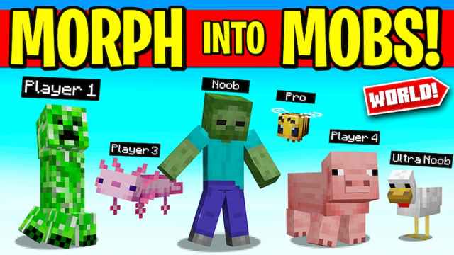 Minecraft features tons of mobs, and most of them have some special abilities. MORPH INTO MOBS! addon allows you to turn into different mobs. After becoming a mob, you will also gain its power. For example, you can fly and shoot fireballs by turning into a blaze or sneak into your friends’ house.