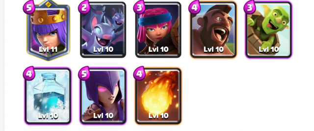 The above deck can be used against a wide variety of opponents and has an average elixir cost as well. Since Archer Queen likes to attack from the shadows, you can use Valkyrie at the front and let the Queen take care of the rest.