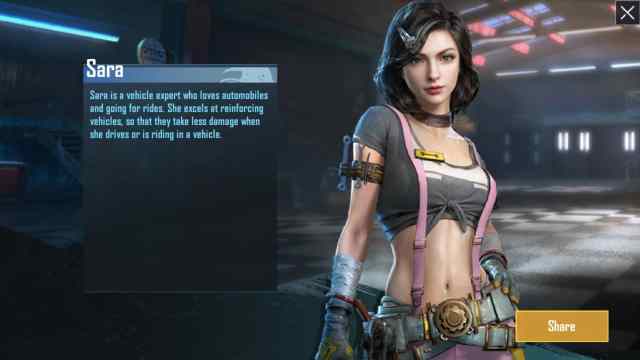 Sara is one of the best characters in PUBG Mobile because she strengthens a vehicles armour/durability by 10%. It may not look like that great of an ability. However, it is the ability that will give you a time window to stop your vehicle and take cover whilst getting attacked by an opponent.