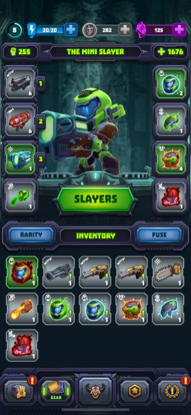 There are four slots in your inventory for your gear including Helmet, Gauntlets, Chestplate, and Boots. Each of the pieces comes in four rarities: Common, Uncommon, Rare and Epic which determine the equipment’s effectiveness. Equipment can be levelled up using Coins which help boost the item’s stats.