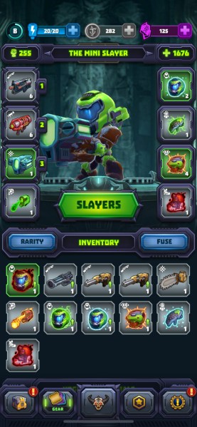 There are four slots in your inventory for your gear including Helmet, Gauntlets, Chestplate, and Boots. Each of the pieces comes in four rarities: Common, Uncommon, Rare and Epic which determine the equipment’s effectiveness. Equipment can be levelled up using Coins which help boost the item’s stats.