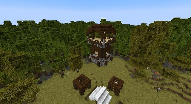 This unique place is located on the border of the biome. Pillager Outpost is surrounded by Mangrove trees and thickets. Moreover, this outpost has goat horns. Goat Horns is a new tool that appeared after Minecraft 1.19 update.