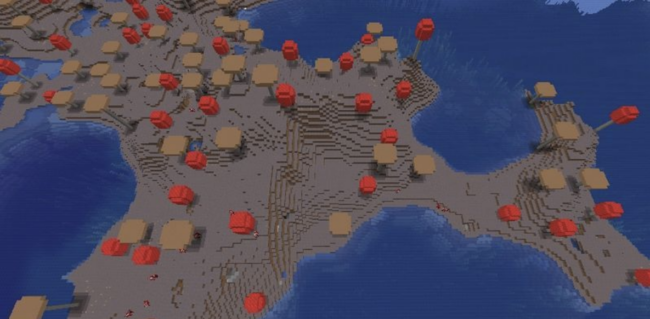 Using this seed, you will spawn near the village and the desert temple, which is located at coordinates 80 ~ 115. To get to the fortress, you need to go to the mushroom island, which is located near point 750 ~ 1085.