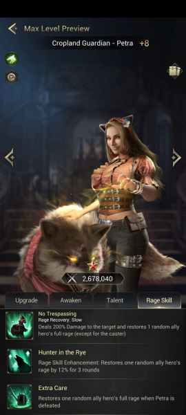Petra is a valuable support unit in Myths of Moonrise. She possesses the rare skill to fill a random ally’s rage meter to the brim. Her rage’s passive abilities focus on replenishing the rage of her teammates. Additionally, Petra can also dish out a decent amount of damage with her ultimate attack