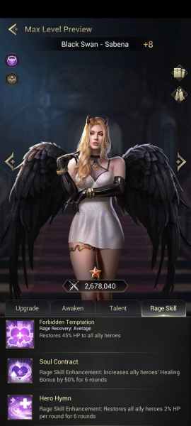 When it comes to healing, Sabena is unrivaled. Her ultimate attack, Forbidden Temptation, can restore a substantial 45% of all allies’ HP. Sabena can also boost the Healing Bonus for all ally heroes and has the unique ability to revive a fallen hero once per battle.
