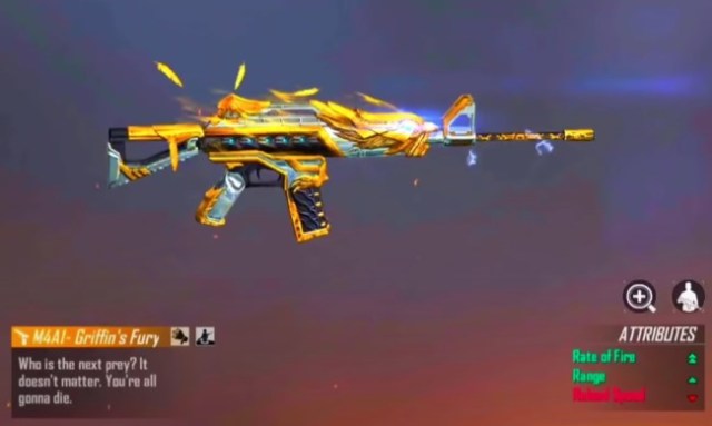 A super rare and very popular skin, Griffin’s Fury will increase the range of your M4A1 and at the same time it will double its fire rate.