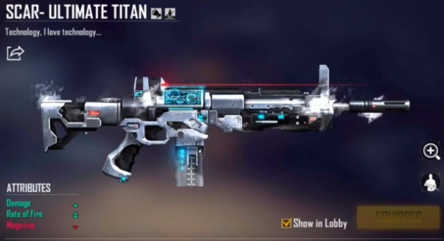 One of the most popular skins in Free fire, Ultimate Titan Scar is deadly with an ultimate ability that boosts fire rate and damage.