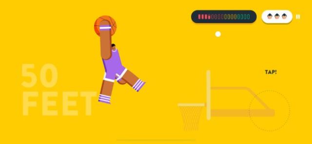 Every circle you land on will increase your dunk meter, as shown by the gauge at the top of the screen. In order to successfully dunk, you need the meter to be in the green portion. Yellow or red will result in a miss, and you will lose a life. Be sure to tap rapidly during this part to keep the meter up.