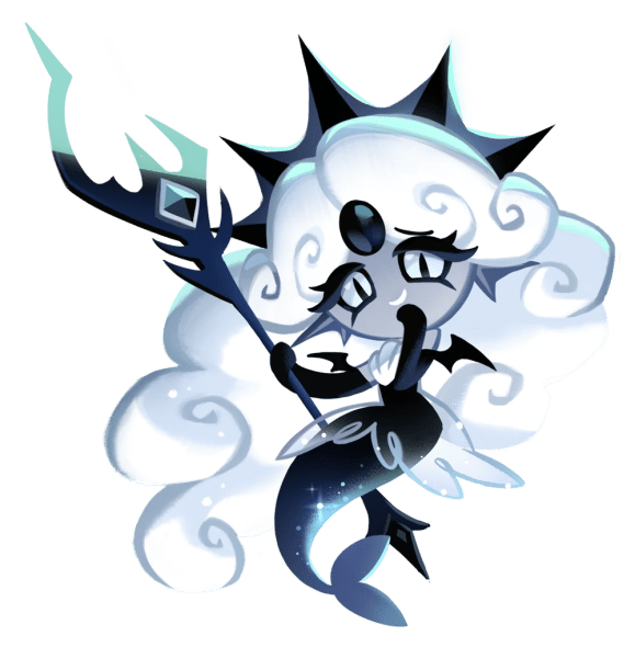 Black Pearl Cookie is an Ambush-type Cookie who prefers the middle of the team, where she can be in the midst of the action. Black Pearl Cookie can create a whirlpool to deal damage and terrify the enemy.