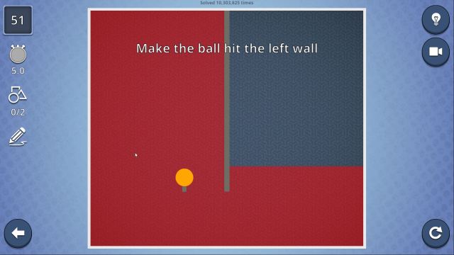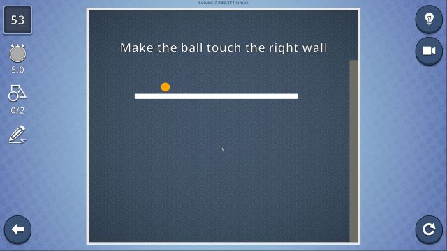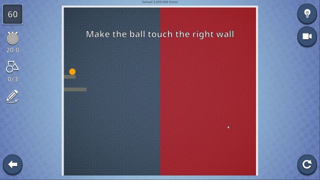 - In this complex challenge, you have to make a construction in the shape of the letter T, which should first move the ball to the left, and after it touches the left wall, you have to stop it.