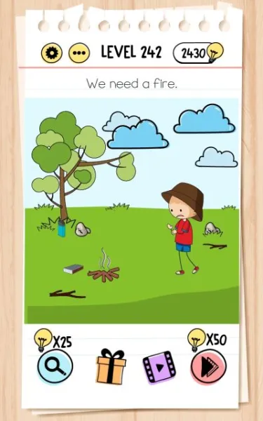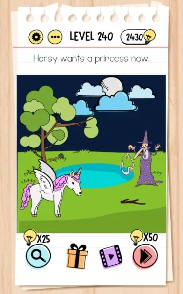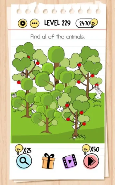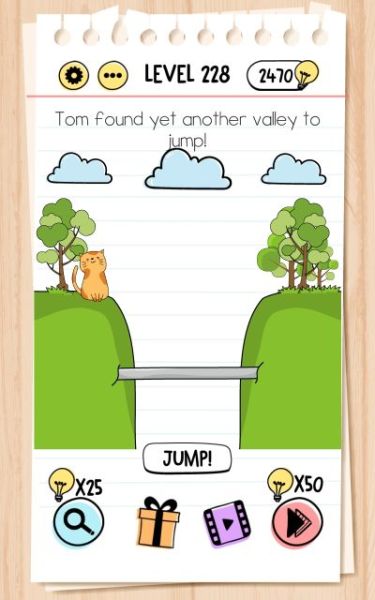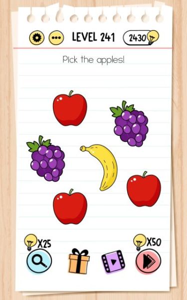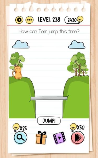 Here are the answers to every level in Brain Test Tricky Puzzles from 201 to 250!