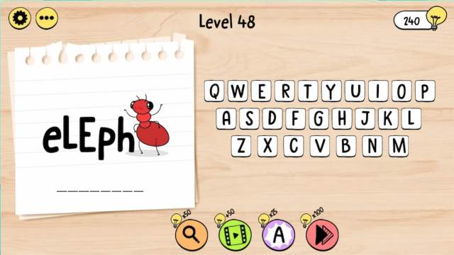 The first levels of Brain Test: Tricky Words are relatively simple. Of course, as you progress through the game, the challenge increases. Once you reach Brain Test: Tricky Words level 41-50, answers will definitely become more tricky!