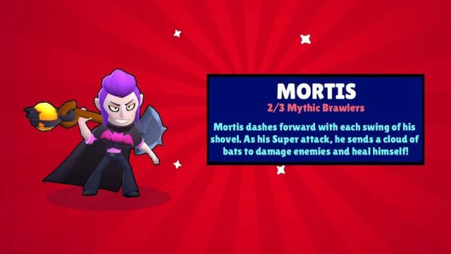 Mortis is a Mythic Brawler who uses movement as part of his attack. He dashes forward, inflicting damage on any enemies he comes into contact with. Mortis’ Super summons a swarm of bats that drain his enemies’ health while restoring his own by the same amount. Mortis’ health and damage output are both moderate.