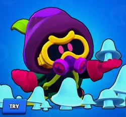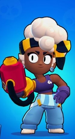 ![]() | Maisie is an Epic Brawler with moderate health and a high damage output. She attacks by shooting a cloud from her fire extinguisher that starts slow but travels faster the further it goes. Her Super is a large shockwave that damages enemies and pushes them back. | 720 (Normal) 936 (with Hypercharge) |
