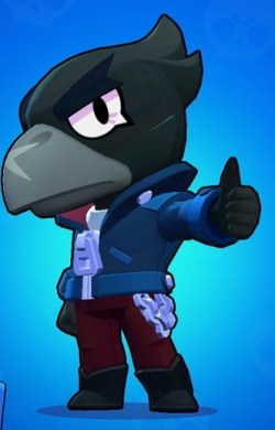 ![]() | Crow is a Legendary Brawler with low health and a low-damaging attack that poisons enemies. He has excellent mobility, and his Super makes he jumps and throws poisonous daggers around him. His first Gadget grants him a temporary damage-reducing shield and the second slows all poisoned enemies temporarily. Crow’s first Star Power moderately decreases the damage the output of a poisoned enemy, and his second makes enemies with less than half of their maximum health take more damage from his daggers. His Hypercharge makes his Super throw and returns poisonous daggers around him. | 820 (Very Fast) 984 (with Hypercharge) 3000 (with Super) |