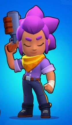 ![]() | Shelly is a Starting Brawler with moderate health and damage. Her attack is a burst of shotgun shells that deal great damage up close. Her Super knocks enemies back and destroys obstacles. Shelly’s first Gadget, Fast Forward, allows her to dash a few tiles. Her second Gadget, Clay Pigeons, narrows the width and increases the range of her attacks. | 770 (Fast) 963 (with Hypercharge) |
