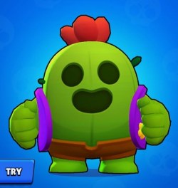 ![]() | Spike is a Legendary Brawler with low health but high damage output. His attack is a cactus that explodes on impact and shoot spikes in all directions. His Super creates a slowing and damaging patch of spikes on the ground. His first Gadget, Popping Pincushion, rapidly fires waves of spikes in all directions His second Gadget, Life Plant, spawns a cactus to provide cover and heal teammates. | 720 (Normal) 936 (with Hypercharge) |