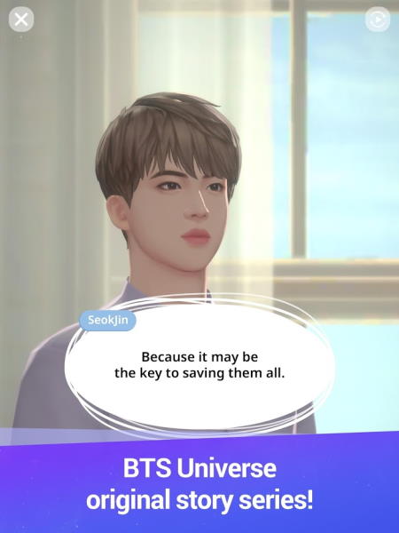 The other half of BTS Universe Story is creating your own story. This game is basically allowing any kind of BTS fanfiction come to life with 3D models and nice background art, so let your imagination go wild!