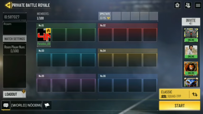 - Now, ask other players to join the room using this ID or Invite them by adding them into your friend list.