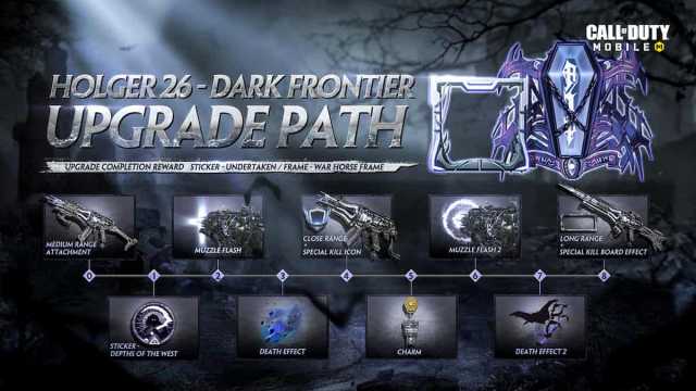Step into the Dark Frontier and answer the call of the Kreugar – Black Hat, one of the toughest outlaws you’ll encounter this season. This new Mythic Drop features that dark and epic operator on top of a series of Lost Gothic unique camos for the Sickle, SPR-208, Tripmine, Truck, and more! However, it also features one of our favorite weapon designs ever, the Holger 26 – Dark Frontier.